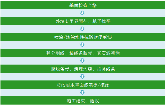 綠丹水性真石漆建議施工步驟: